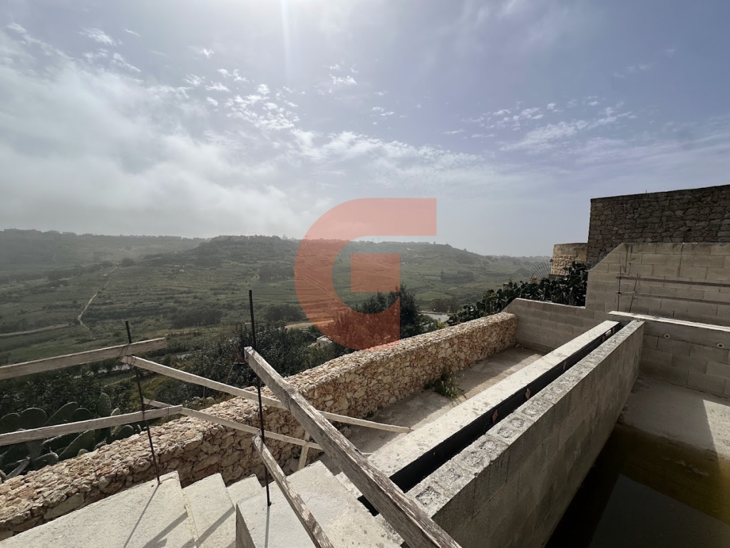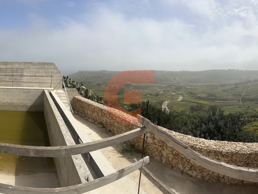 An exceptional opportunity to finish one of Xagħra’s most promising cliff-edge properties with panoramic valley and sea views. Set on a 350 sqm plot, this fully detached shell spans three levels and is offered in shell form — ideal for a bespoke luxury conversion.